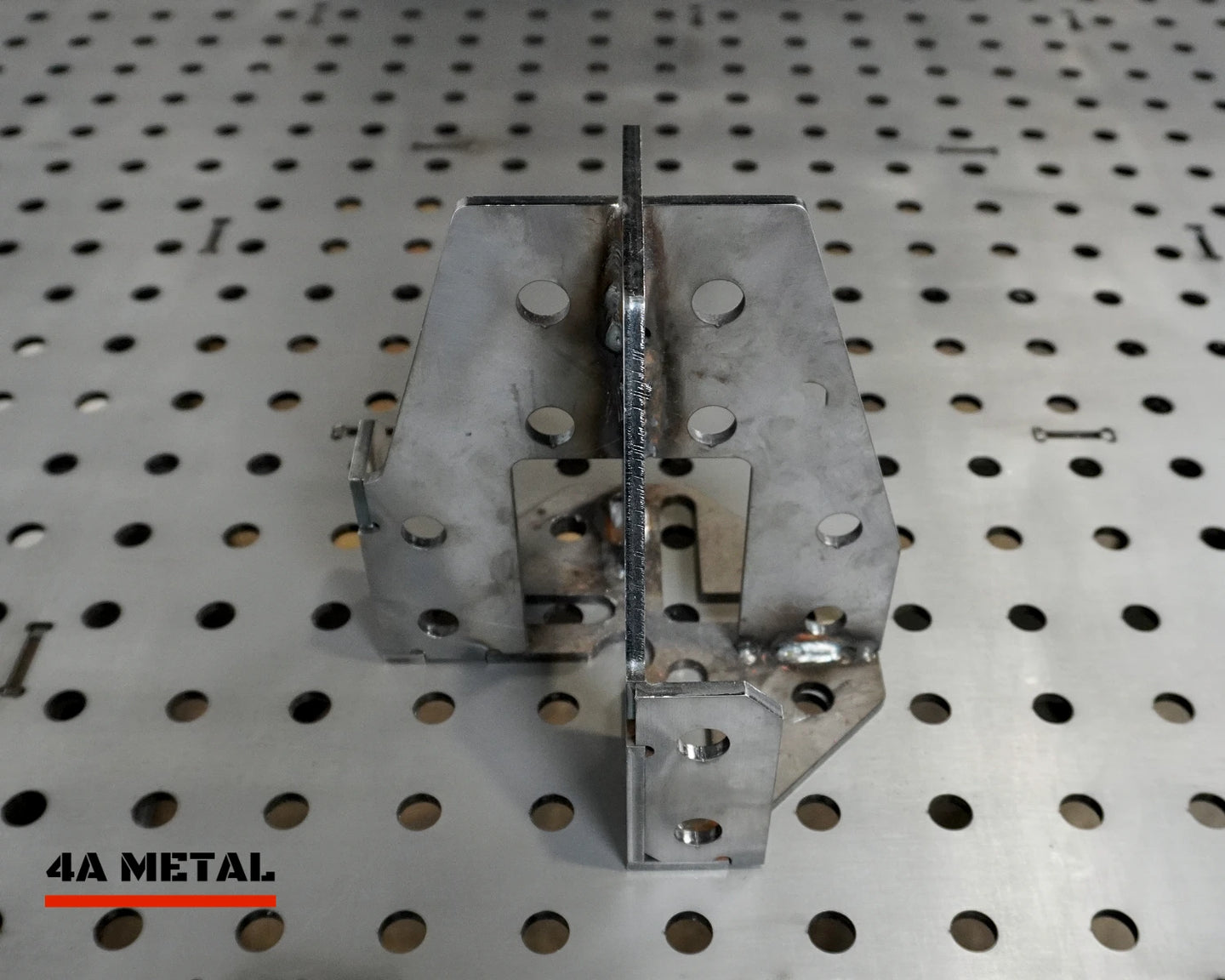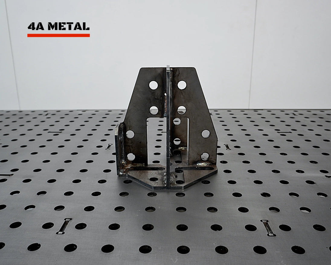 Le bloc de jonction d’angle 4A Métal est un accessoire de bridage conçu pour relier plusieurs éléments entre eux sur table de soudure Ø16 mm. Composé d’une base plate et de deux faces croisées à 90°, il permet d’assembler solidement des pièces ou accessoires sur deux plans perpendiculaires, tout en maintenant un alignement parfait.