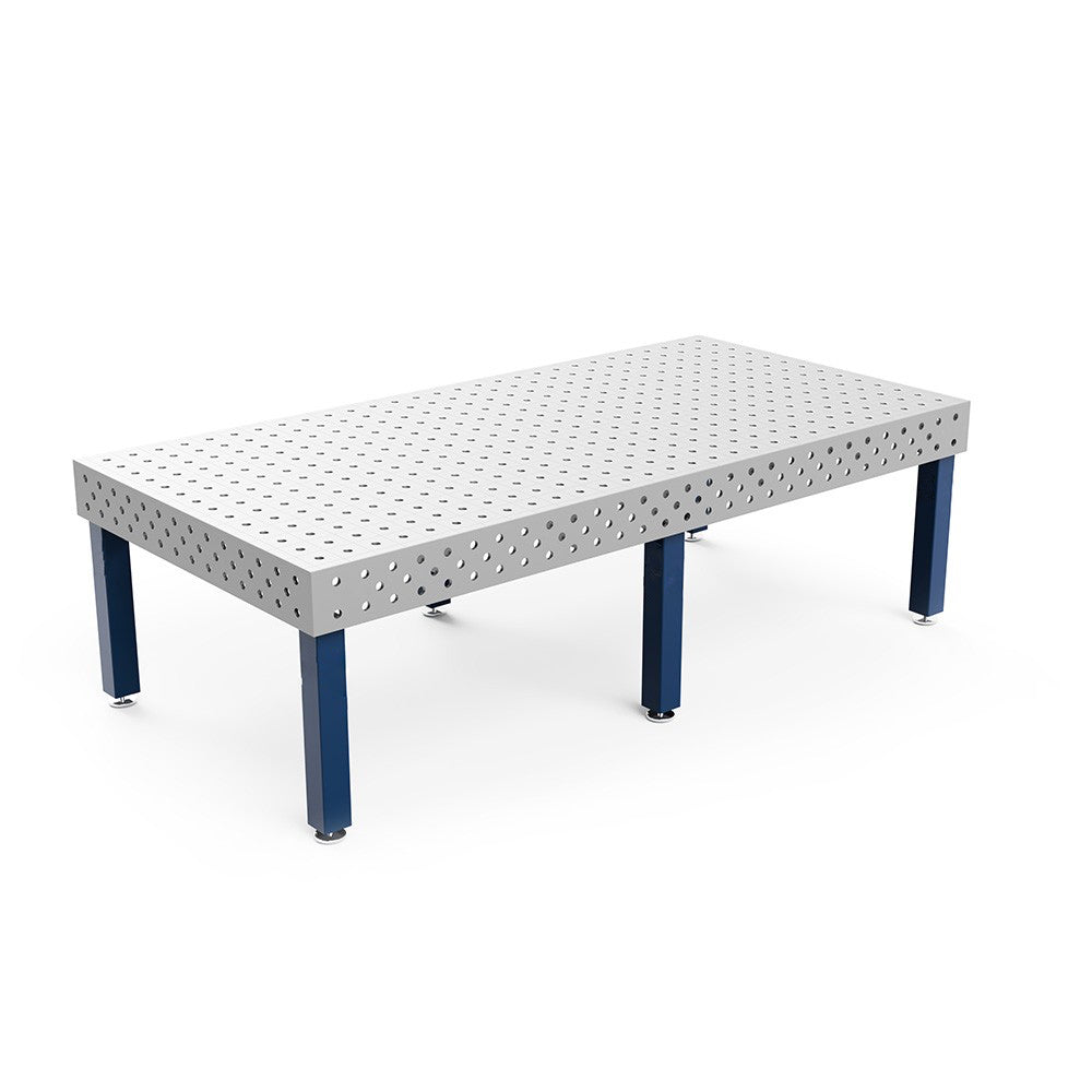 Son plateau massif de 15 mm d’épaisseur, usiné avec précision, garantit une stabilité remarquable et une excellente résistance à la déformation, même lors de travaux intensifs de soudage, d’assemblage ou de bridage. La planéité maîtrisée du plateau assure une répétabilité parfaite des opérations et un gain de temps considérable lors de la mise en place des pièces.