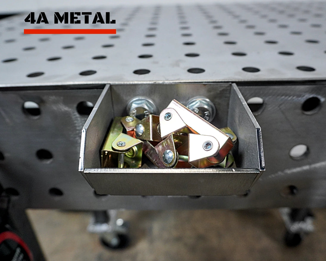 Ces bacs sont conçus pour se fixer sur le côté de votre table de soudure et offrir un rangement rapide et accessible : rangez vos pinces, clés, goupilles, serre-joints ou petits outils sans encombrer votre surface de travail. Ils permettent de travailler proprement et efficacement, avec tout votre matériel à portée de main.