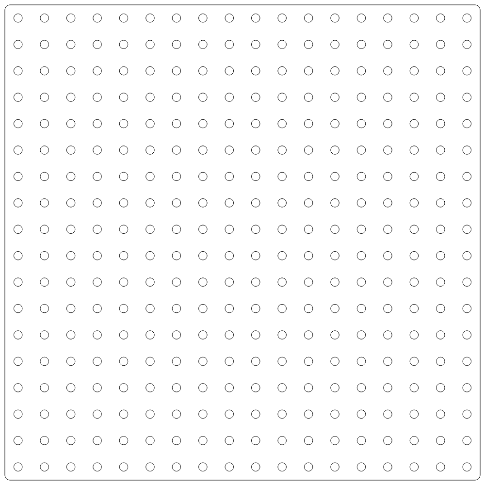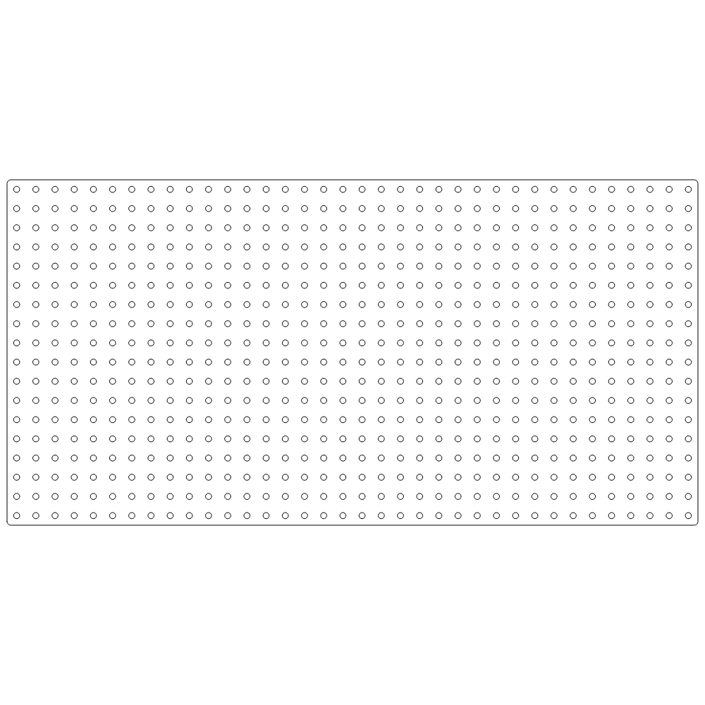 Découpé au laser dans nos ateliers, ce plateau en acier décapé 6 mm est percé de trous Ø16 mm espacés de 50 mm, compatibles avec la majorité des accessoires du marché.